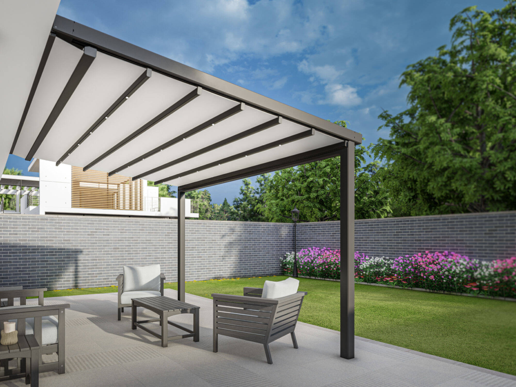 Utilizamos exclusivamente materiales de primera calidad, desde las telas hasta los mecanismos, para resistir cualquier clima, ya sea lluvia, sol intenso.
